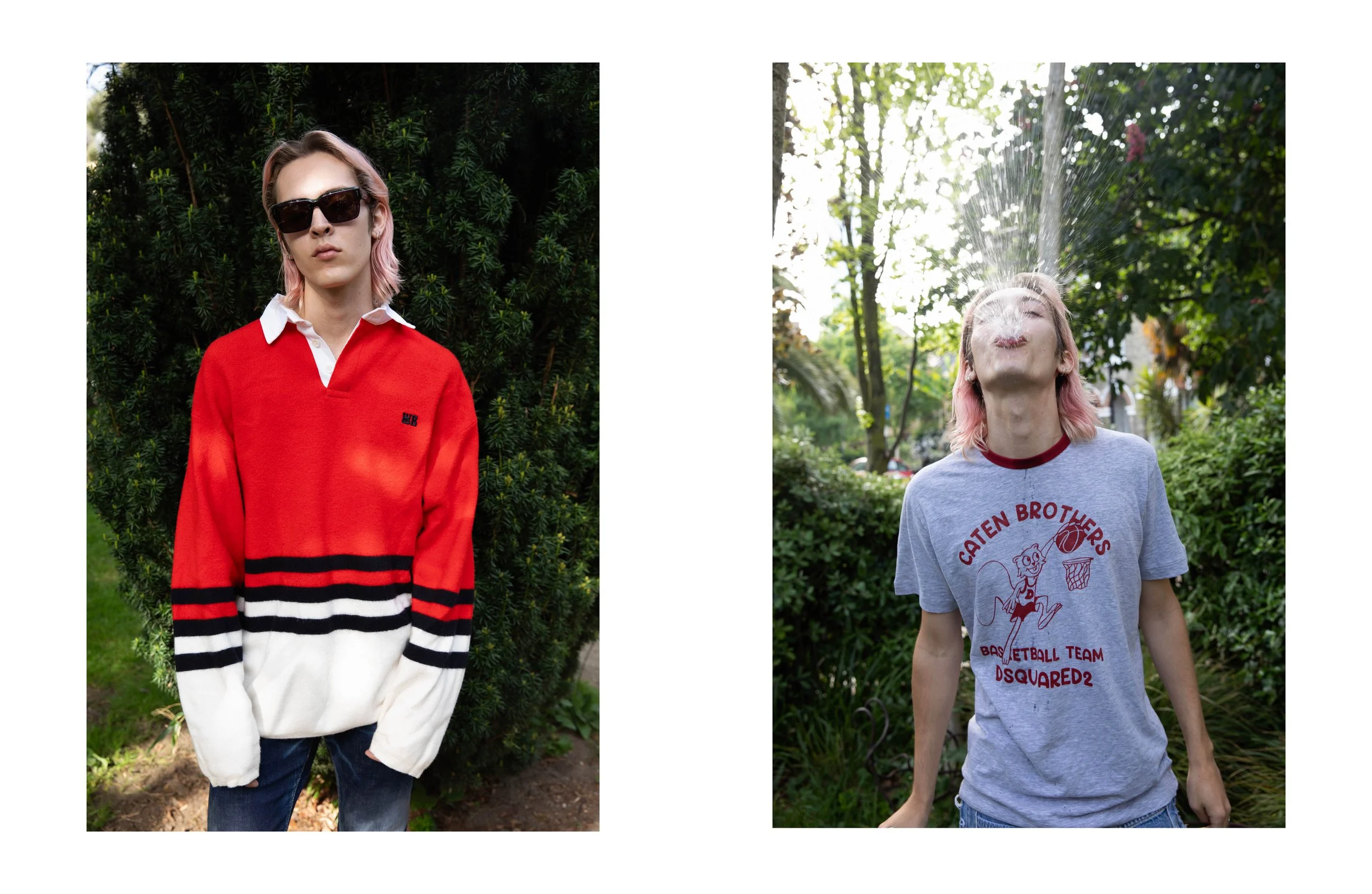 Left Top Wales Bonner, jeans Dsquared2, sunglasses Calvin Klein Jeans