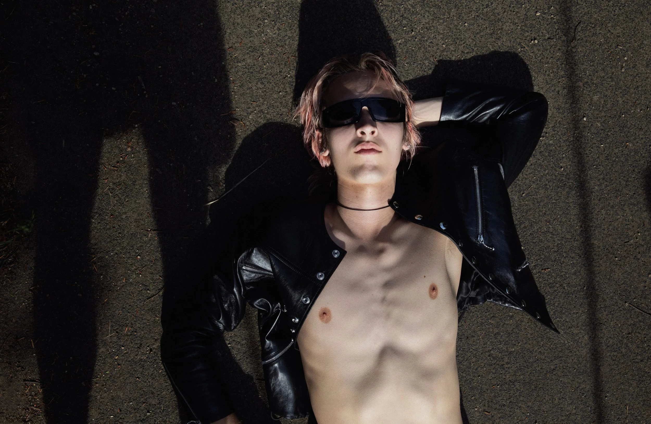 Jacket and sunglasses Celine Homme, necklace Celine by Hedi Slimane